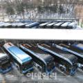 서울 시내버스 노동조합이 무기한 전면파업에 돌입한지 이틀째인 14일 서울 도봉구 한 시내버스 차고지에서 버스가 주차돼 있다.