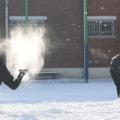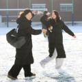 첫눈 쌓인 학교 운동장…친구들과 만드는 추억