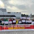 용산 대통령실 앞 노동자들 "개정 노조법 무력화하는 시행령 폐기하라"