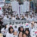 11일 부산 동구청 앞 도로에서 관내 중·고등학생과 시민 등 8백여 명이 '부산진일신여학교 의거' 당시 만세 시위를 재현하며 태극기를 흔들며 거리 행진을 펼치고 있다. 부산진일신여학교 의거는 부산 지역 최초의 만세 운동으로, 열흘 앞서 시작된 3·1운동을 부산·경남 지역에 확산시킨 계기로 평가받고...