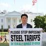 이강덕 포항시장, 美백악관 앞에서 1인 시위…철강 관세 인하 호소
