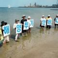 환경단체들 "후쿠시마 오염수 해양투기 중단하라"...포항송도해수욕장...