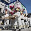 20일 전북도청 앞에서 전주자임추모공원 유가족협의회가 전북도와 전주시의 책임 있는 자세를 촉구하며 상여 시위를 하고 있다. 2025.10.20