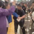 "짱X 아웃" 반중 시위에...냅다 커피 뿌린 여성