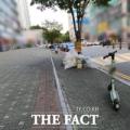 24일 오후 <더팩트>가 찾은 인천시 연수구 송도동 한 인도의 풍경이다. 지난 18일 이곳에서 30대 여성이 달리는 전동 킥보드에 치이는 사고가 발생했다.... 구청 관계자는 "구청에서 규제할 수 있는 건 인도에 불법 주정차로 방치된 PM을 도로교통법을 근거로 견인하는 것이 유일하다"며 "무면허 운전 또는 헬멧...