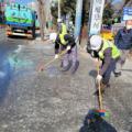 집단 서식 떼까마귀 분변 골칫거리…김해시 세척 작업