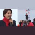 29일 대전 중구 으능정이 거리에서 열린 '국민의힘 민생회복 법치수호 국민대회'에서 양향자 최고위원이 "윤석열 대통령의 계엄은 불법이었다"고 발언하자 당원들이 종이컵을 던지고 야유를 보내는 등 항의했다. 2025.11.29 국민의힘의 양향자 최고위원은 계엄 사태 1주년을 맞아 당 지도부와 당원들에게 과거에...