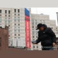 러 대사관 “승리는 우리 것” 현수막 걸더니… 예정된 행진은 취소