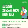 데일리 환경 이정윤(assh1010@dailyt.co.kr) 서울 강북구(구청장 이순희)는 김장철을 맞아 11월 2일부터 12월 31일까지 ‘김장철 채소쓰레기’의 일반... 위해 일반 종량제봉투 배출을 허용하게 됐다”며 “구민들께서는 혼합 배출이나 불법투기가 발생하지 않도록 올바른 분리배출에 협조해 달라”고 말했다.