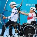 28일 광주 동구 5·18민주광장 특설경기장에서 열린 2025 세계장애인양궁선수권대회 W1(중증장애) 혼성 복식 동메달 결정전에서 한국의 김옥금ㆍ박홍조가 슈팅하고 있다. 2025.9.28