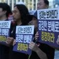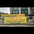 14일 경기 고양시청 앞에서 지난 5월 30일 직무 관련 있는 주식회사 해찬송학 건물 특별장소에서 음주와 가무 등을 곁들인 수백만원 상당의 향응을 제공받아 '청탁금지법 위반' 혐의로 고발된 강승필 고양도시관리공사 사장에 대해 '김영란법 위반 혐의, 강승필 공사 사장은 사퇴하라'는 현수막을 걸고 시위를...
