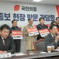 이날 예산정책협의회에 이어 국민의힘 지도부와 최민호 시장은 환경단체가 불법으로 점거하고 있는 세종보 현장을 방문해 현황을 점검하고, 조속한 세종보 가동을 촉구했다. 최민호 시장은 “세종보는 세종시를 건설하며 도시기능...