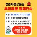 전남 강진군이 강진사랑상품권의 건전한 사용 환경을 조성하고 부정유통을 차단하기 위해 오는 26일부터 12월 12일까지 일제 단속에 들어간다. 단속... 부정유통이 적발될 경우 가맹점 등록 취소, 과태료 부과, 부당이득 환수 등 행정·재정 처분이 이뤄지며, 위반 규모와 심각성에 따라 경찰 수사도 의뢰된다....