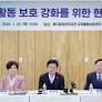 최교진 교육부 장관이 22일 대전 에듀힐링센터에서 강은희 교육감협의회장(대구시교육감), 설동호 대전교육감, 교사, 학부모들과 '교육활동 보호 강화...