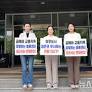 [오산=뉴시스] 오산시의회 의원들이 경기도청 북부청사에서 동낱 물류센터 백지화를 촉구하는 릴레이 시위를 벌이고 있다.(사진 왼쪽부터 조미선, 송진영,...