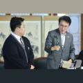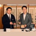 탄소중립 소재로 제작된 선물 받는 김민석 총리