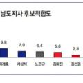 6%, 김선동 전 국회의원 2.8% 순이었다. 이들은 자신의 출신 지역에서 높은 적합도를 보였다. 완도 출신 김영록 지사는 서남권(목포·영암·무안·신안·해남·완도·진도·장흥·강진)에서 35.0% 가장 높은 적합도를 기록했다. 여수 출신 주철현 전 위원장은 동부권(여수·순천·광양·곡성·구례·고흥·보성)...