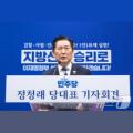더불어민주당 정청래 대표는 8일 "6·3 지방선거 승리에 저의 모든 것을 걸겠다"고 밝혔다. 정 대표는 이날 국회에서 당 대표 취임 후 두 번째 기자회견을... 지선과 함께 치러지는 국회의원 재·보궐 선거와 관련해서는 "전략공천을 원칙으로 하겠다"며 "목표는 가급적 많은 지역에서 이기는 것이다. 이기는...