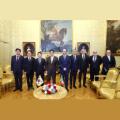 우원식 의장이 로렌초 폰타나 하원의장 면담 참석자들과 기념사진을 촬영하고 있다. 좌측부터 박상혁, 허영, 박정 국회의원, 우원식 의장, 로렌초 폰타나 하원의장, 파브리치오 카스탈디 사무총장, 쥬세페 레나 비서실장, 마리오 디 나폴리 외교보좌관, 루카 피노키아로 대변인. 사진=국회사무처