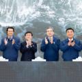 김성환 기후에너지환경부 장관(왼쪽 3번째)이 30일 현대자동차 울산공장에서 열린 현대차 수소연료전지 공장 기공식에서 관계자들과 기념촬영하고 잇다. (왼쪽부터)박성민 국회의원(국민의힘·울산 중구), 호세 무뇨스 현대차 사장, 김 장관, 장재훈 현대차 부회장, 김두겸 울산시장, 김기현 국회의원...