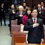 (서울=국제뉴스) 장동혁 국민의힘 대표와 송언석 원내대표가 13일 서울 여의도 국회에서 열린 국회의원·당협위원장 연석회의 및 의원총회에서 국민의례를 하고 있다.