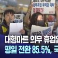 ◀곽상언 더불어민주당 국회의원 (10월 14일 산자중기위 국정감사)▶ "평일에 의무 휴업일로 지정한 지자체가 65개, 국민의힘 소속으로 85%입니다. 민주당 소속은 불과 7.9%밖에 안 돼요." 특히 2024년 1월, 윤석열 정부가 대형마트 의무휴업일의 공휴일 지정 원칙을 폐지하겠다고 발표한 뒤로는 편중 현상이 더...
