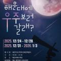 해운대빛축제 특별 이벤트 '우주 보러 갈래' 포스터 [사진=부산시] 2025.12.22 이 행사는 천체 망원경으로 달과 토성을 관측하는 체험으로, 12월 24∼28일과 31일∼내년 1월 3일 해운대해수욕장에서 오후 6시부터 9시 30분까지 열린다. 10대 망원경이 설치되며 사전 예약 없이 누구나 참여 가능하다. 구는...