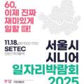 서울시는 다음 달 18일 강남구 서울무역전시컨벤션센터(SETEC)에서 '서울시 시니어 일자리박람회 2025'를 개최한다고 20일 밝혔다. 이번 박람회는 단순한 취업 정보 제공을 넘어 현장 면접과 채용 연계, 경력 재설계 컨설팅, 디지털 역량 강화 체험을 한자리에서 제공하도록 설계됐다. 채용관은 구직자와 기업 간...