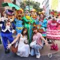 3일 서울 중구 명동거리에서 외국인 관광객들이 소설 '오즈의 마법사'·에버랜드 캐릭터들과 기념촬영을 하고 있다. 오는 5일부터 에버랜드에서 열리는 가을축제 '에버랜드 오브 오즈'에서는 오즈의 마법사를 테마로 에메랄드 시티, 블러드 시티 등 다채로운 콘텐츠를 경험할 수 있다. 2025.9.3