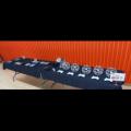 장비들이 전시돼 있다. 정근우 기자 하늘을 배우는 가족들의 주말이 대전 동구의 숲속에 피어났다. 작은 프로펠러가 돌아가며 그리는 원 위로 아이의... 정근우 기자박희조 동구청장(오른쪽 첫 번째)과 학생들이 19일 동구청소년자연수련원에서 드론 체험을 하고 있다. 중구 제공 글·사진=