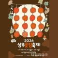 상주시 곶감축제추진위원회가 주최·주관하고 경북도, 상주시, 상주시의회, 상주곶감유통센터가 후원하는 2026 상주곶감축제가 오는 23일부터 25일까지... TSF 메인텐트에서는 48개 곶감판매 부스가 참여해 곶감을 비교한 뒤 구입할 수 있을 뿐 아니라, 감~자바스 경매, 라이브커머스 등 다채로운 공연이 펼쳐질...