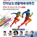 사진=제37회 전라남도생활체육대축전 포스터 매일일보 = 김명일 기자 | 전라남도체육회가 주최하고 전라남도 생활체육대축전 조직위원회가 주관하는... ▲태권도 퍼포먼스 ▲'영광의 순간' 주제공연 ▲김경아, 홍지윤, 로이킴, 이은미, 나태주, 김용빈의 축하 공연과 화려한 드론 라이트 쇼가 어우러져 축제의...