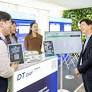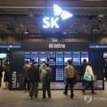 SK AI 서밋 전시 살펴보는 관람객들