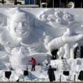화천산천어축제 개막을 나흘 앞둔 6일 축제장인 강원 화천군 화천천 주변에서 대형 눈 조각 작품 제작이 한창 이뤄지고 있다. 화천 연합뉴스