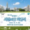 의정부시(시장 김동근)는 오는 11일(토) 개최 예정인 ‘제54회 의정부시 시민의 날 기념식’을 당초 야외 광장 대신... 축하공연과 퍼포먼스, 플리마켓, 다양한 체험존과 먹거리 부스 등이 마련돼 시민들이 함께 즐길 수 있는 다채로운...