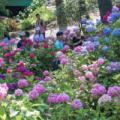 6일 부산 영도구 태종대 내 태종사에서 관광객들이 활짝 핀 수국을 감상하고 있다. 올해 영도 수국꽃 문화축제는 13일까지 태종대유원지 태종사 일대...