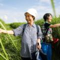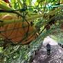 절기상 가을을 맞이한다는 '처서'를 앞두고 폭염이 기승을 부린 22일 서울 마포구 하늘공원에서 양산을 쓴 시민이 수세미와 호박 덩굴을 지나며 더위를 피하고 있다.