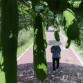 날씨 속보 뉴스 | 절기상 가을을 맞이한다는 '처서'를 앞두고 폭염이 기승을 부린 22일 서울 마포구 하늘공원에서 한 시민이 수세미와 조롱박 덩굴을 지나고 있다.