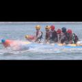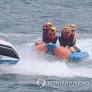 (부산=연합뉴스) 강선배 기자 = 폭염이 이어진 8일 부산 수영구 광안리해양레포츠센터를 찾은 피서객들이 수상 놀이기구를 타며 더위를 식히고 있다...