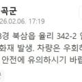 6일 오후 경북 칠곡군 북삼읍에서 대형 화재가 발생해 인근 지역에 비상이 걸렸다. 칠곡군에 따르면 이날 오후 4시 58분쯤 북삼읍 율리 342-2번지 인근 한 공장에서 불이 났다. 화재 발생 직후 군은 재난문자를 통해 차량 우회와 주민 안전 유의를 당부했다. 현재까지 인명 피해 여부는 확인되지 않았으며...