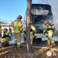 안산와스타디움 주차장서 화재…안산 그리너스 버스 불 타