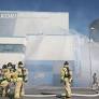 부산 기장군 고리원전 재난대응 안전한국훈련에서 119소방대원들이 화재를 진입하고 동시에 고리본부 자체소방대가 인명을 구조하는 훈련을 진행하고 있다.