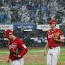1회말 갑작스러운 폭우로 경기 중단