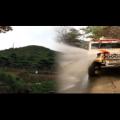 이동식 수조에 물 채우는 소방관