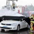 24일 인천 계양구 한 공장에서 공장 복합 재난 발생을 대비해 실시된 2025년 긴급구조종합훈련에서 소방관들이 화재가 발생한 전기차에 이동식 수조를 씌우고 있다. 2025.10.24. amin2@newsis.com