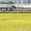 한눈에 보는 오늘 : 사회 - 뉴스 : (화성=뉴스1) 김영운 기자 = 맑고 청명한 날씨를 보인 15일 경기 화성시 경기도농업기술원에서 관계자들이 연구용 벼를 살펴보고...