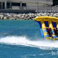 전국 대부분 지역에 폭염특보가 내려진 28일 오후 경남 남해군 상주은모래비치에서 피서객들이 플라잉피쉬보트를 타며 더위를 식히고 있다. 2025.07.28. con@newsis.com