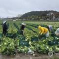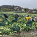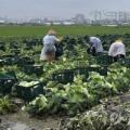 빗속 배추 수확하는 외국인 노동자들