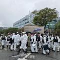 폭우에 대형 방수포로 가려진 국가정보자원관리원 화재현장