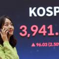 24일 서울 영등포구 여의도 한국거래소 홍보관에 코스피 종가가 표시돼 있다. 이날 코스피는 전 거래일보다 96.03p(2.50%) 오른 3,941.59로 마감했다.... 시장에서는 물가 안정 속도와 경기 둔화 조짐을 감안해 금리 인하를 늦추지 않을 것으로 보고 있지만 결과에 따라 글로벌 증시의 변동성이 커질...